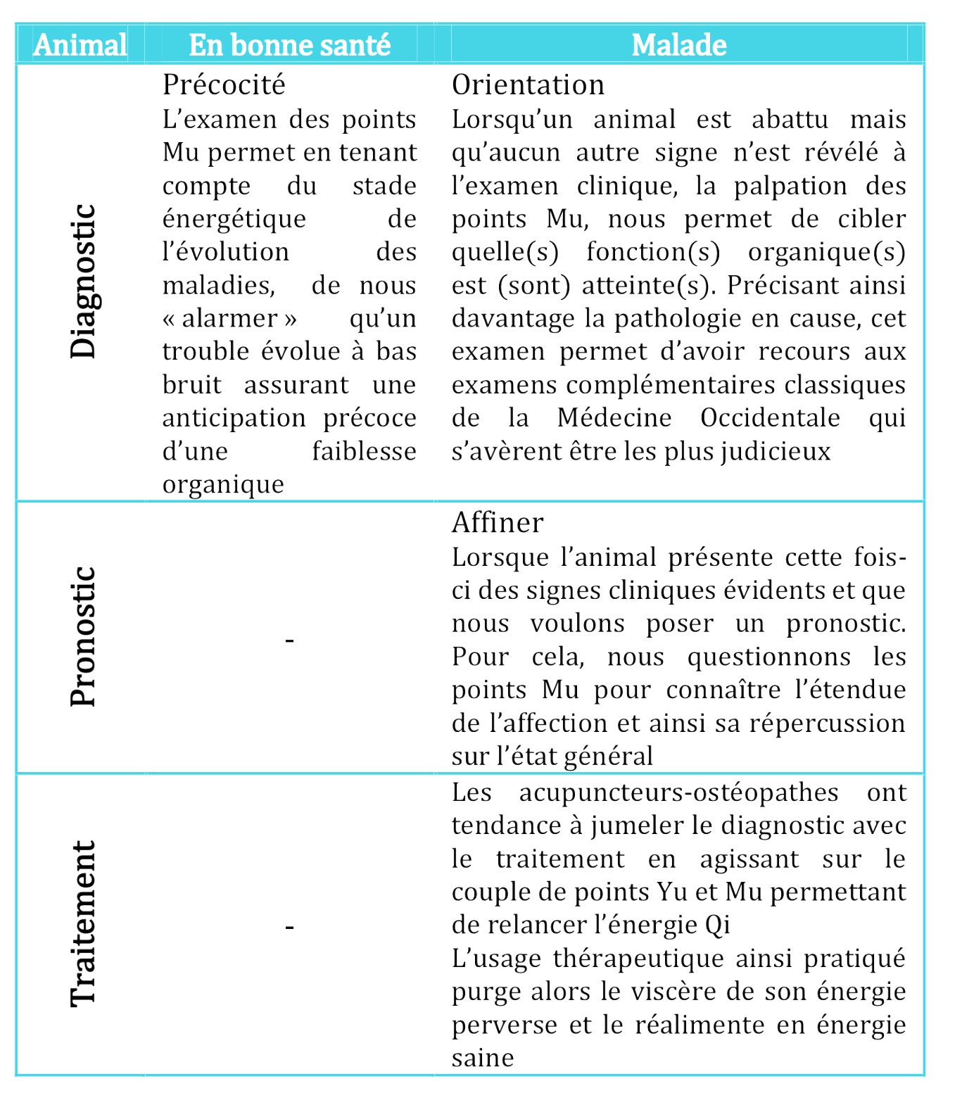 La lecture des 20 premières pages de cette thèse est vivement recommandée pour les curieux qui souhaiteraient se familiariser avec les notions fondamentales de la MTC qui pourront difficilement être résumées davantage au sein de cet article. Ainsi nous aurons un bref aperçu de l’historique de l’Acupuncture et surtout nous aurons conscience de ses difficultés de traduction et de diffusion à la suite d’une introduction récente (seulement six décennies) dans le domaine vétérinaire français pour être appréhendée par l’occidental.