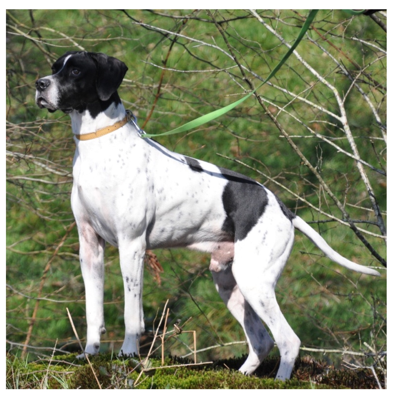 Fabio est un Pointer mâle d’un peu plus de 6 ans, il n’est pas castré et présente un embonpoint dans la norme (4/9). Il est présenté à la consultation le 27 Juin 2016, pour un problème de démarche anormale, à l’initiative de sa propriétaire qui n’a pas souhaité passer par un traitement classique et préfère la démarche ostéopathique.