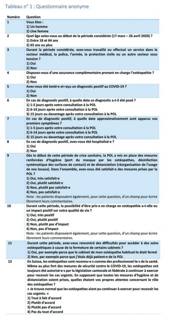 Soutenir le système de santé au plus fort d’une crise sanitaire : le rôle des ostéopathes et le vécu des patients durant la période de confinement imposée par le COVID-19