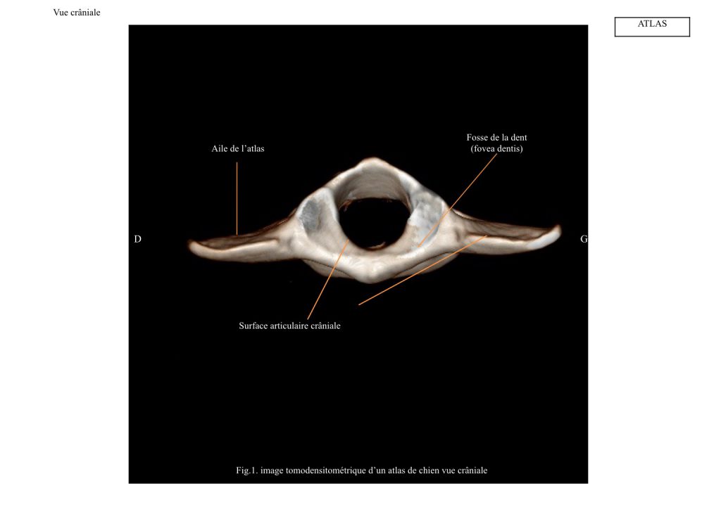 L’atlas est la première vertèbre cervicale. Elle s’articule aux condyles de l’os occipital d’une part et à l’axis d’autre part.