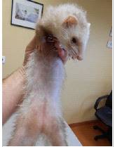 Tina est une furette de 7 ans, stérilisée. Elle vit en maison sans autre animaux de compagnie.