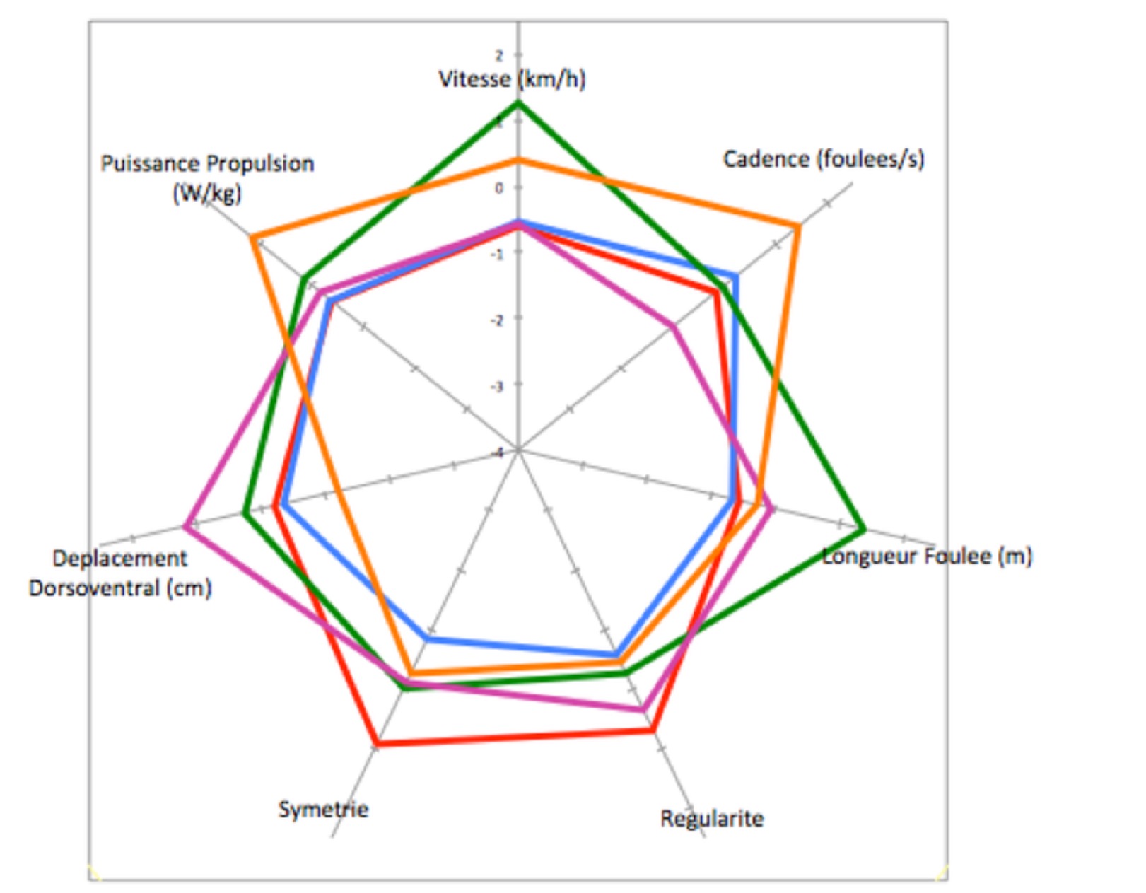Pourtant, la locomotion ne correspond ‘qu’à’ un ensemble de mouvements cycliques qui se répètent à intervalles réguliers et induisent un déplacement. Le trot est par exemple une allure assez simple, régulière et idéalement, symétrique. Une boiterie, quelle que soit son type, affectera forcément la vitesse, la symétrie, la longueur et/ou la régularité des foulées. Eh bien la bonne nouvelle, c’est qu’on est maintenant capable de mesurer objectivement ces paramètres !