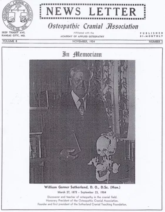 Affiliated with the Academy Of Applied Osteopathy – News Letter – November 1954 – Volume 8 – Number 2. – Published bi-monthly – 3829 Troost Ave. Kansas City, MO.