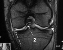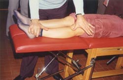 Lorsque le genou est étendu, la tension du ligament rotulien empêche le tibia de se déplacer en avant sur le fémur. Un tel déplacement vers l’avant avec la ...